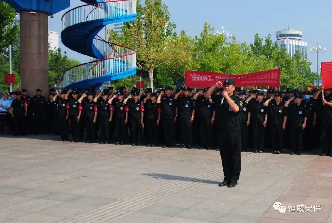 為進(jìn)一步加強(qiáng)保安行業(yè)宣傳,提升保安隊(duì)伍形象,展示保安隊(duì)伍在協(xié)助公安機(jī)關(guān)打擊違法犯罪、參與巡邏防控、服務(wù)重大活動(dòng)安保中發(fā)揮的作用,7月24日,由德州市公安局德城分局主辦的“保安心向黨、護(hù)航新征程”保安行業(yè)主題宣傳日活動(dòng)在德州市中心廣場(chǎng)舉行,恒威安保領(lǐng)導(dǎo)班子及150余名保安隊(duì)員代表參加了本次活動(dòng)。