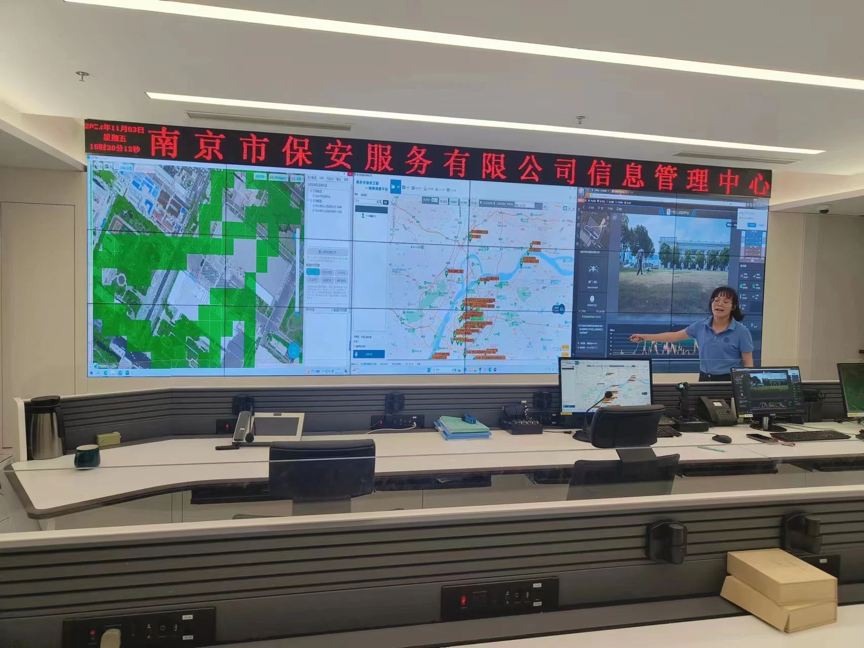 考察組第二站前往南京市保安服務有限公司(以下簡稱“南京市保”),參觀了南京市保智能考試系統(tǒng)與信息管理中心,工作人員詳細介紹了智能考試系統(tǒng)、遠程視頻監(jiān)控、無人機巡檢、環(huán)境檢測等業(yè)務。隨后,安排專人參加了市場拓展策略與投標技能提升、核心控標中標全流程實務操作專題培訓,與來自全國各地保安、物業(yè)企業(yè)的近百名同行共同交流學習。
