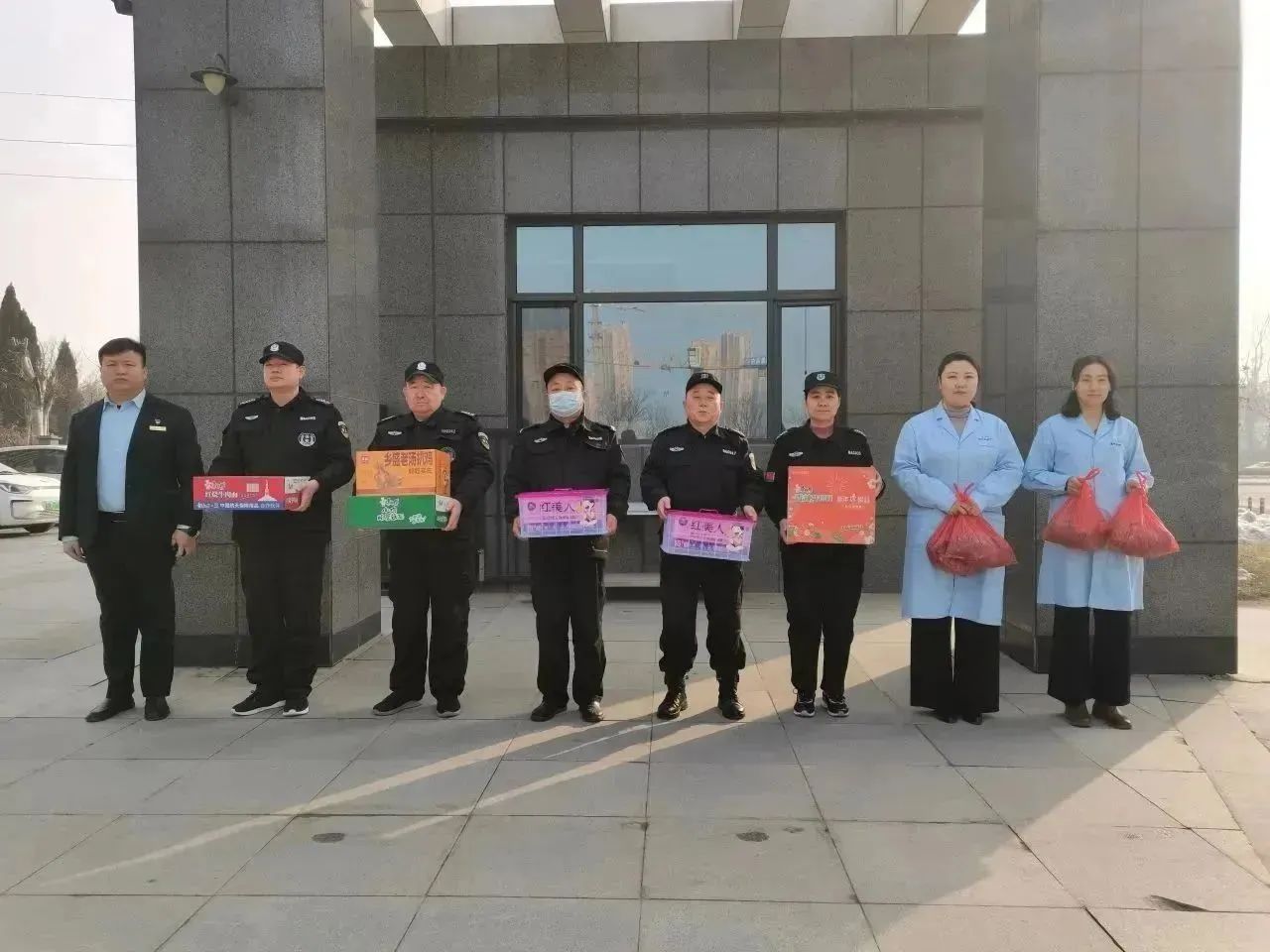 公司領(lǐng)導(dǎo)先后走訪慰問了工商銀行、星凱國際小區(qū)執(zhí)勤班組。每到一處,公司領(lǐng)導(dǎo)們表示,過去一年大家在本職崗位上點(diǎn)點(diǎn)滴滴的奉獻(xiàn)是恒威穩(wěn)步前進(jìn)的動力,公司的發(fā)展與壯大離不開大家的付出與支持;并詳細(xì)詢問了春節(jié)期間各項工作落實情況,同時叮囑大家要值好班、站好崗,注重工作細(xì)節(jié),認(rèn)真排查安全隱患,確??蛻魡挝挥盟⒂秒姲踩?,毫不松懈抓好各項工作,時刻把客戶單位安全放在心上,度過一個平安祥和的春節(jié);并代表公司對值班人員奉獻(xiàn)精神表示誠摯的感謝。
