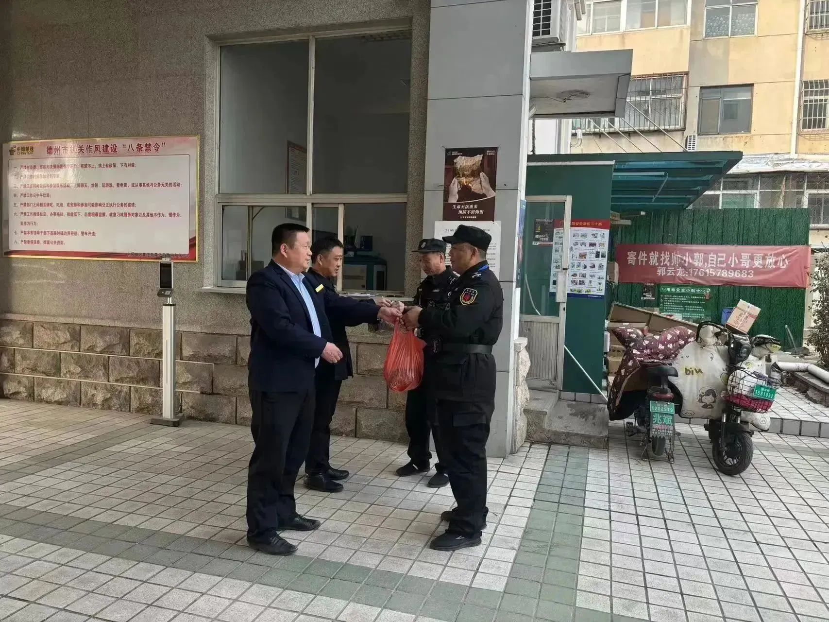 2月8日,德州市恒威安保服務(wù)有限公司黨支部書記、總經(jīng)理王新衛(wèi)一行走訪慰問了春節(jié)期間堅守在工作崗位上的一線隊員,向他們送去新春的祝福和問候。