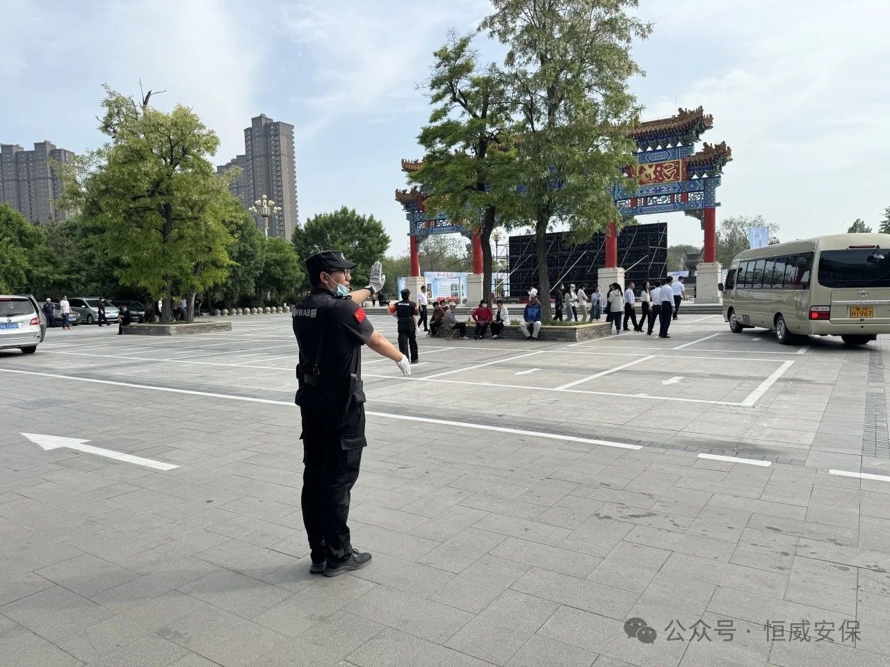 此次安保任務(wù),我司主要負(fù)責(zé)主舞臺(tái)以北區(qū)域,由于參會(huì)人員、車(chē)輛眾多,需安排專(zhuān)人引導(dǎo)車(chē)輛進(jìn)場(chǎng)有序停放,疏導(dǎo)人員。從早8點(diǎn)至晚10點(diǎn),兩天的勤務(wù)值守,恒威安保人一直“釘”在現(xiàn)場(chǎng),引導(dǎo)車(chē)輛停放、疏散人群、擺放車(chē)輛,整齊的著裝、規(guī)范的手勢(shì)、忙碌的身影受到在場(chǎng)群眾和客戶(hù)單位的廣泛好評(píng),再次擦亮了恒威安保品牌底色,贏得了群眾良好口碑。